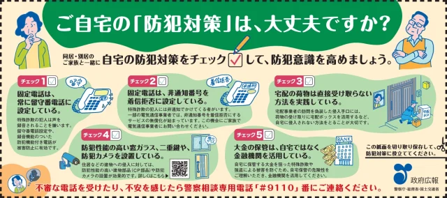 近年住宅での盗難や不法侵入等の事件が全国各地で相次いで